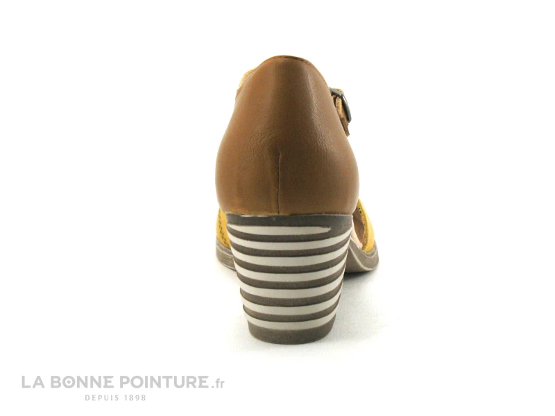 Les escarpins bicolores jaune et marron Alce Shoes 9840, des escarpins à bride salomé aussi jolis que confortables au meilleur rapport qualité / prix !