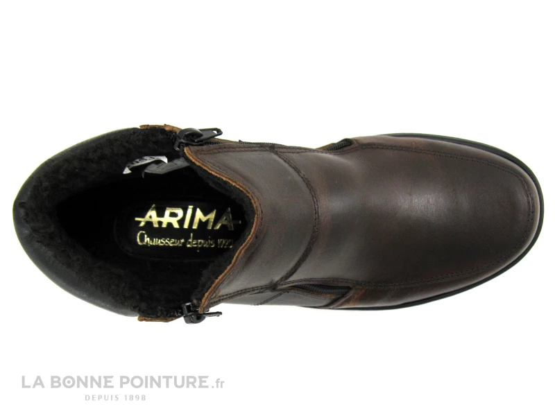 Les deux fermetures éclair offrent une grande ouverture, et permettent de fermer aisément le bottillon marron Arima King.