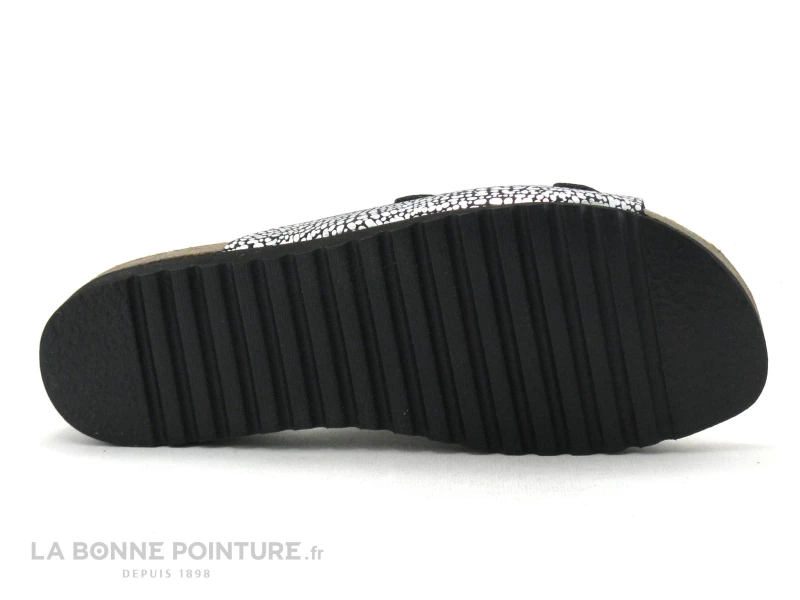 Brillantes et fantaisie, ces jolies mules Femme Artika Basque en cuir noir et argent !