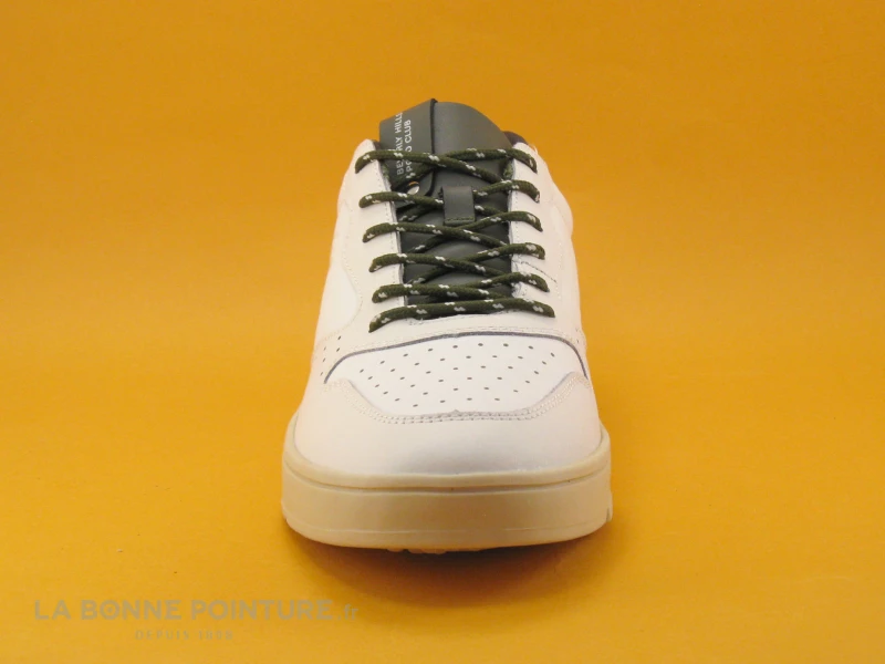 Cette basket basse Bervely Hills mélange des parties blanches et blanc cassé, avec la languette kaki foncé.
