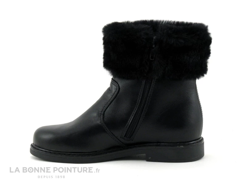 Les pieds seront chouchoutés dans cette boots fille Bopy Sadio, réalisée dans un cuir noir lisse avec un bout arrondi sans coutures pour un confort optimum.