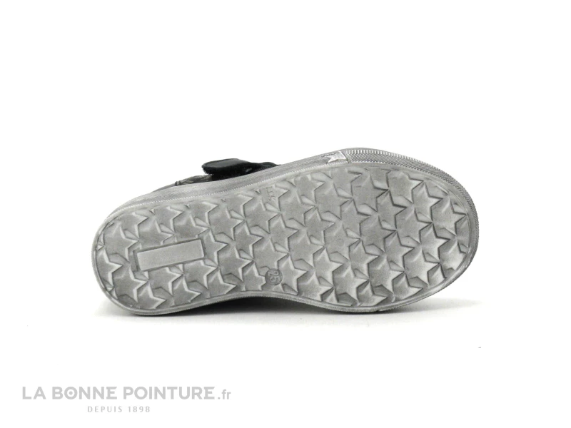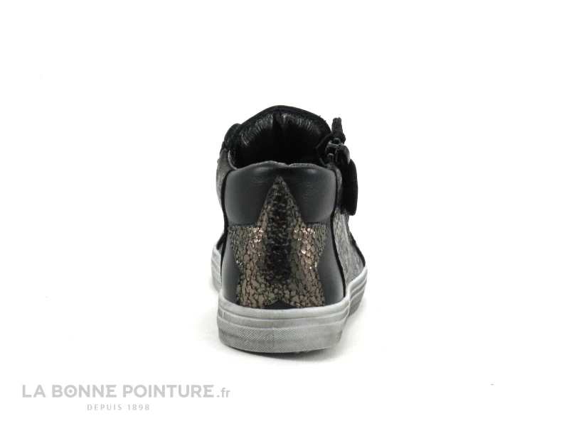 Cette basket montante fille Bopy mélange un cuir lisse noir avec un cuir imprimé or sur les côtés.