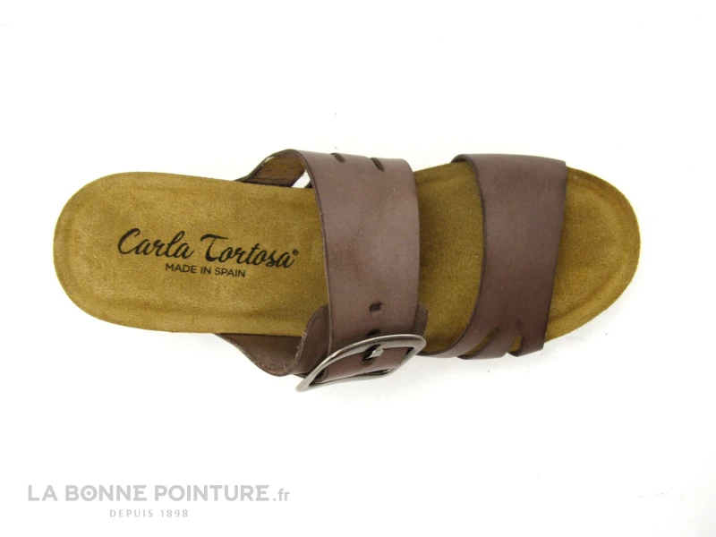 Cette mule Femme Carla Tortosa 56103 est en cuir nuancé marron, avec une large bride réglable sur le coup de pied.