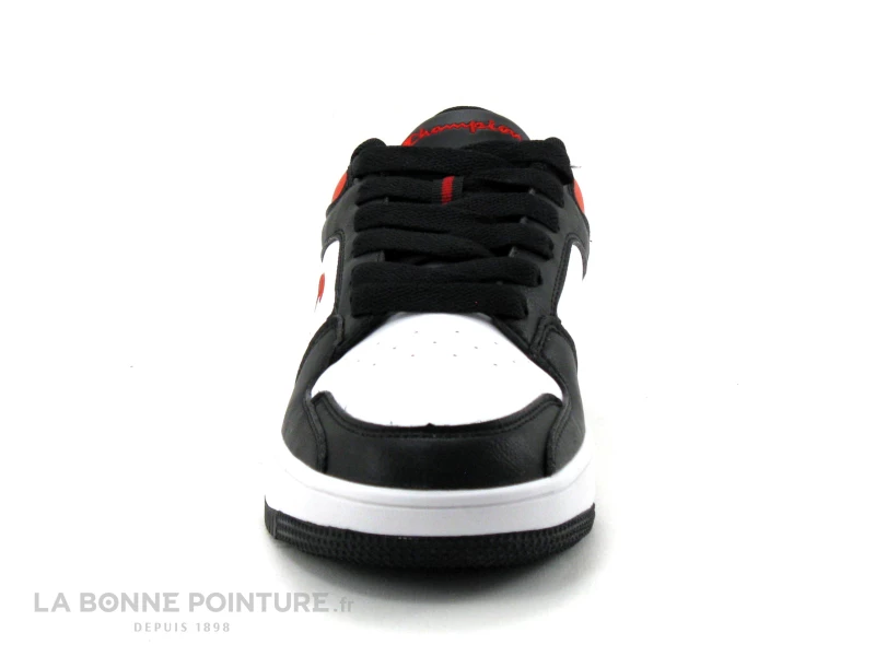 Cette basket basse Homme Champion Rebound est en simili cuir noir, blanc et rouge.