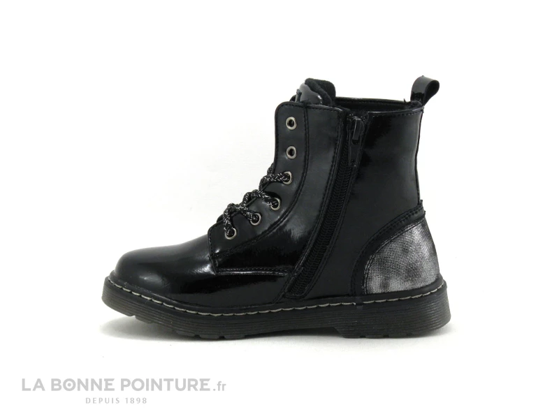 Chaussure fille facile à fermer, cette bottine noir verni Chipie est munie d’une fermeture éclair. Le lacet permettra d’ajuster la chaussure au peton de votre fillette.