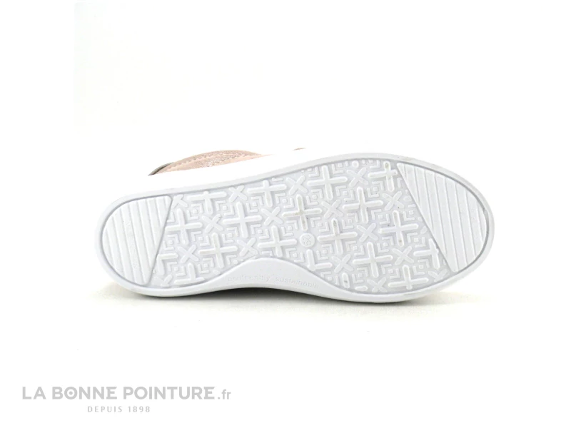 La semelle de marche des sneakers fillette rose pailleté Cienta 8006 est souple, blanche et légèrement parfumée.