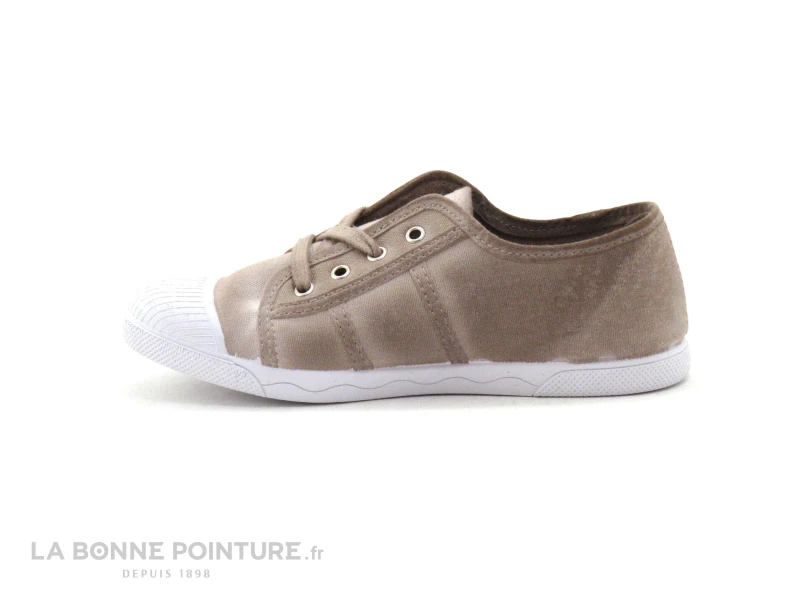Cette jolie tennis fille est en toile beige nuancée, avec un lacet du même ton qui permet de fermer la chaussure.