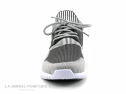 Le lacet blanc permetra d’ajuster les tennis, il se noue une fois pour toutes aux extrémités.