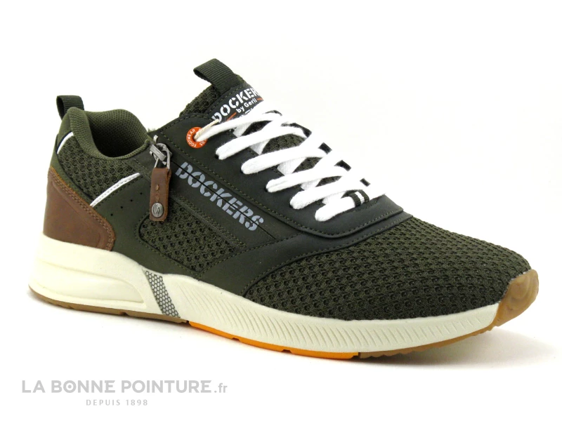 Un look mode et un excellent rapport qualité / prix pour ces belles baskets basses Homme en maille kaki Dockers 50FL005 !