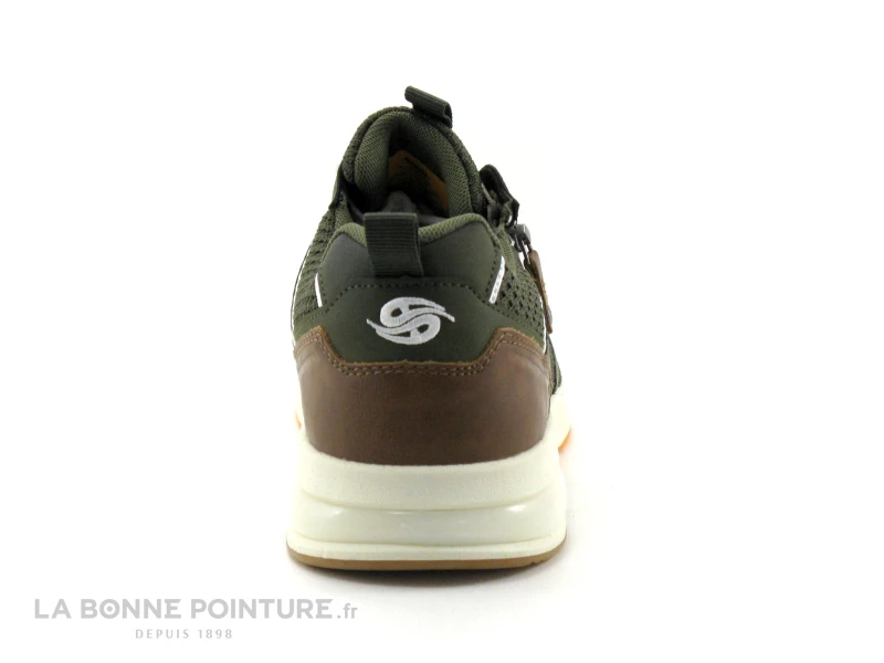 Cette basket de ville Homme est principalement en maille kaki, avec une partie en simili cuir marron à l’arrière de la chaussure.