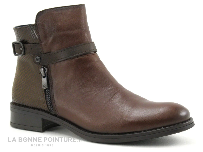 Ces sĂ©duisantes bottines Femme Dorking Tierra associent un cuir marron nuancĂ© et un cuir veloutĂ© marron aussi, aspect python verni Ă l’arrière.
