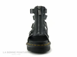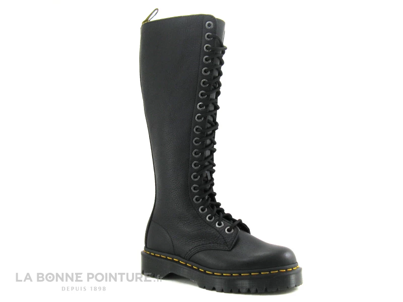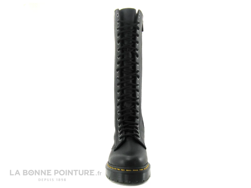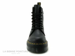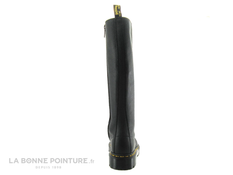 La longue fermeture éclair latérale permet de fermer la botte noire Dr Martens.