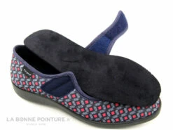 Cette pantoufle fabriquée en France est en textile bleu marine, avec 3 brides velcro qui permettent de régler la chaussure confort Fargeot à chaque morphologie.
