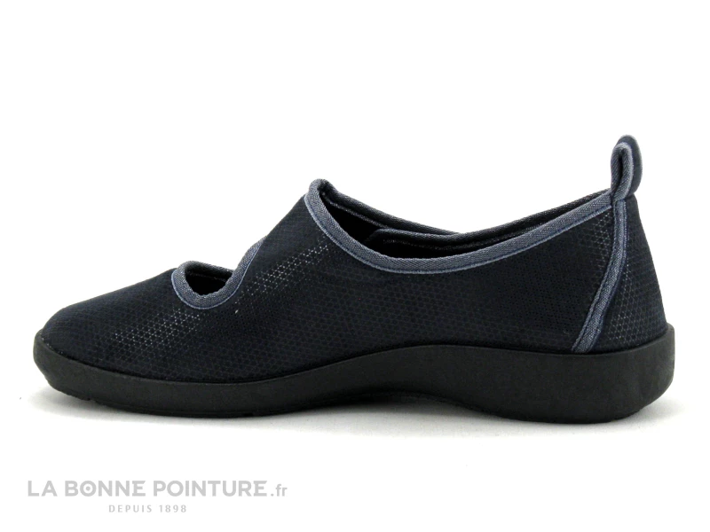 Ce chausson confort Femme Fargeot Tarzalie est en textile brillant bleu marine, avec un liseré bleu métallisé sur le pourtour.