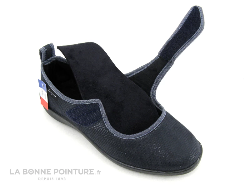 Pour choyer les pieds sensibles, gonflés et douloureux, voici de belles pantoufles Femme Fargeot Tarzalie bleu marine fabriquées en France !