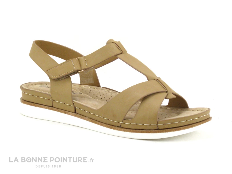 Cette sandale femme pas chère est en simili cuir beige, avec une bride salomé.