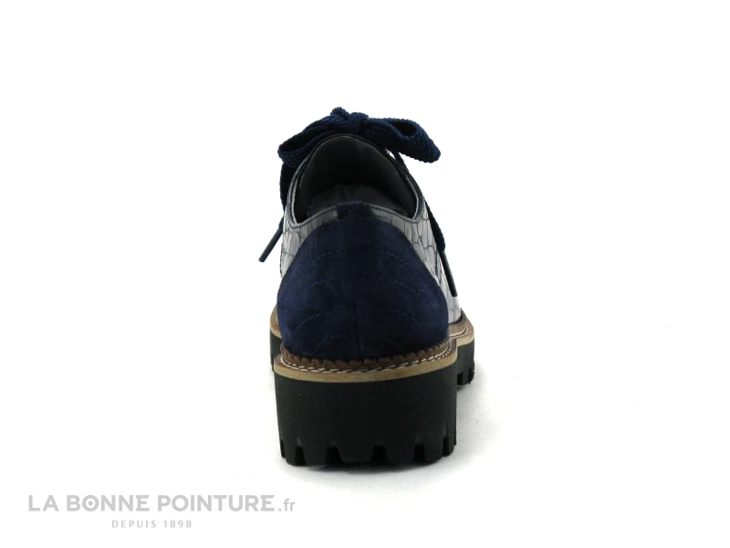 Chaussures Femme originales en cuir bleu marine croco, ces superbes derbies Folie’s Copos !
