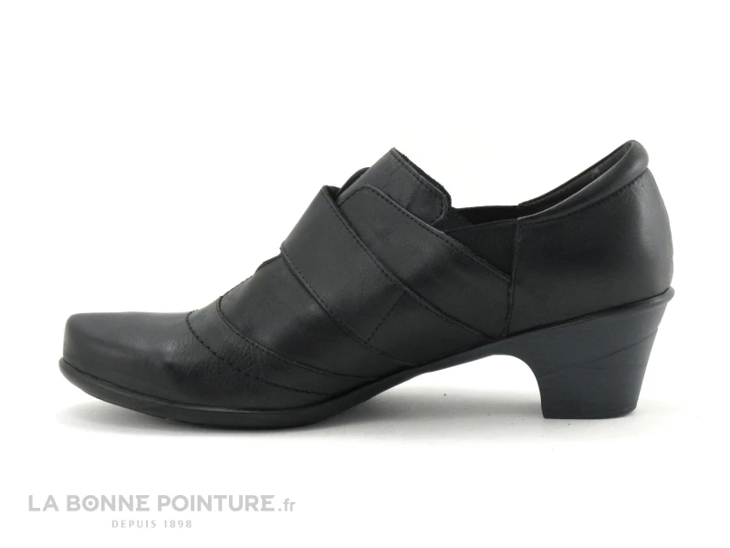 Cette chaussure Femme Geo Reino à petit talon est en cuir noir aspect légèrement fripé.