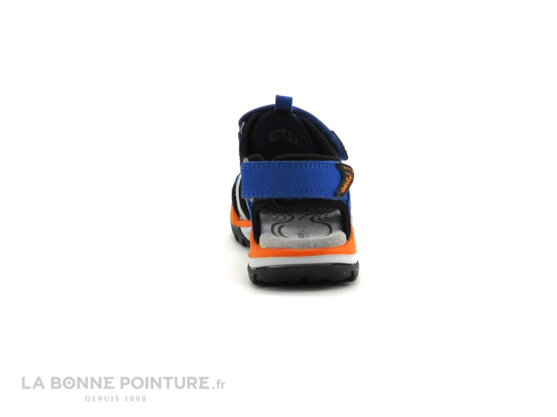 Ces sandales sport enfant Geox Borealis J920RB sont en textile et matières synthétiques résistantes, bleu royal, orange et gris.