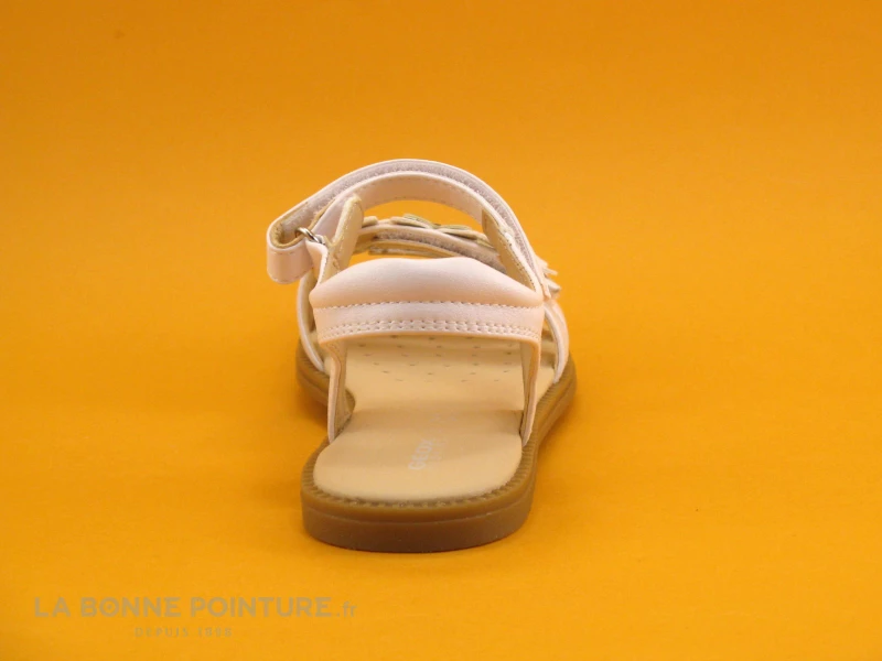 Les nu-pieds fille blanc et argent Geox Karly J8235I et leurs petits papillons, des sandales enfant de grande qualité avec brides auto-agrippantes !