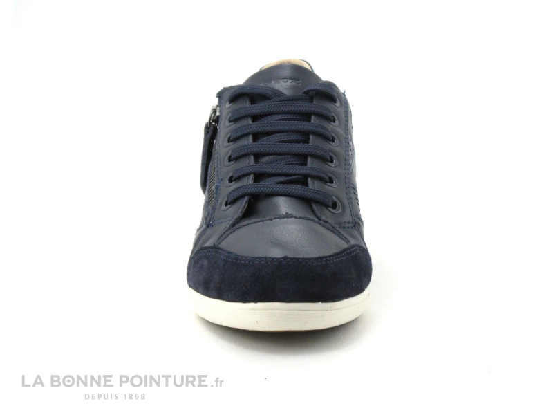 Fermeture facile des baskets Geox Myria avec la fermeture éclair latérale, le lacet plat bleu marine vous permettra d’ajuster la chaussure à votre morphologie.