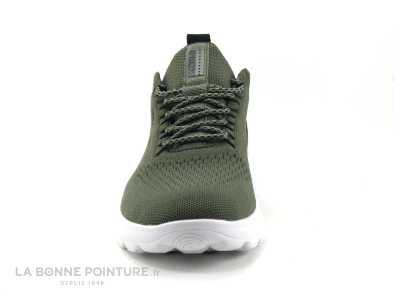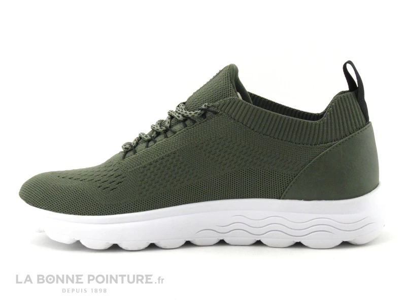 Ces sneakers Homme Geox Spherica sont en maille vert kaki, avec le contrefort en simili cuir kaki.