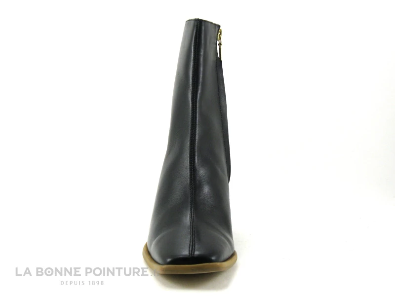 Cette bottine Femme Gioseppo est en cuir lisse noir, avec bout carré et couture apparente sur le dessus.