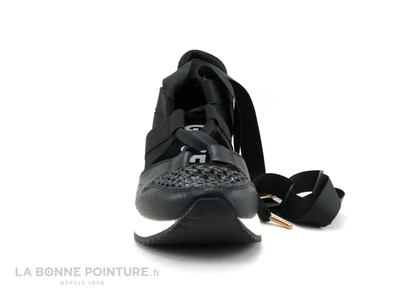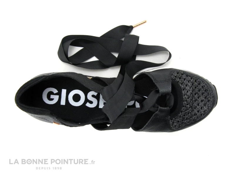 Cette chaussure été Femme Gioseppo Tassin est en simili cuir noir, avec le devant aspect raphia noir.