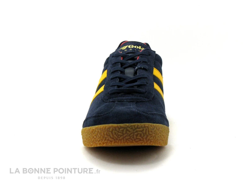 Cette basket Homme Gola Harrier est en cuir velours bleu foncé, avec de légères nuances qui caractérisent la chaussure.