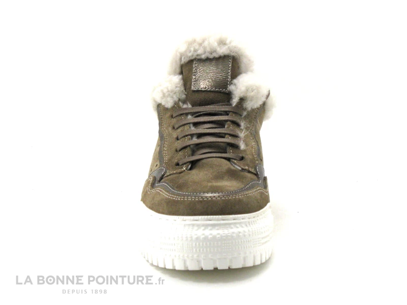 Cette basket Femme Hooper Zephyr est en cuir velours beige taupe, avec de petites touches de bronze métal. De la fourrure habille l’encolure et le haut de la languette pour une finition réussie.