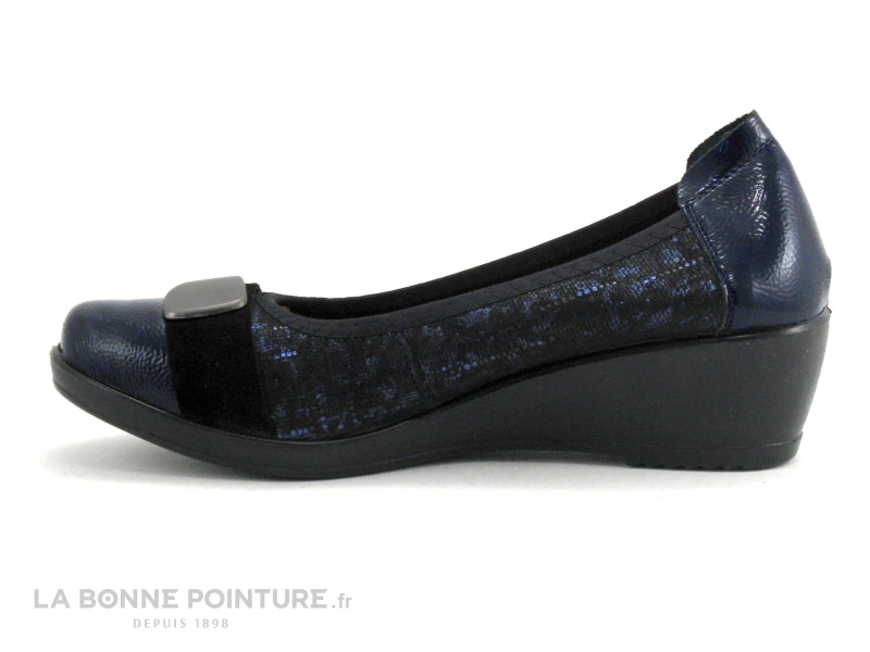 Voici de jolis escarpins Inéa Ramiro, en cuir velouté bleu marine et noir avec les extrémités bleu marine verni.