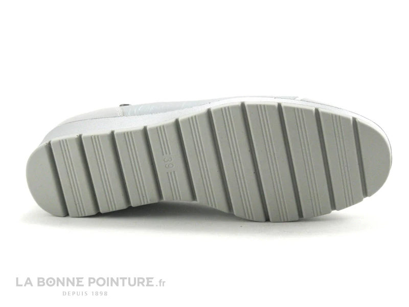 Le talon compensé de la chaussure Inéa Rodez est strié et argenté, il mesure environ 3.5 cm de hauteur.