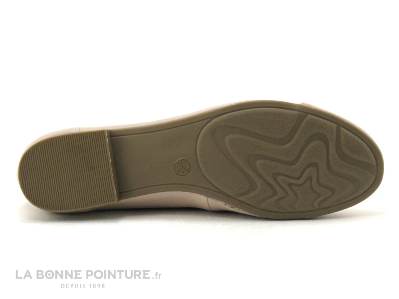 Cette ballerine Femme est en cuir lisse rose clair, avec la pointe en simili cuir rose verni.