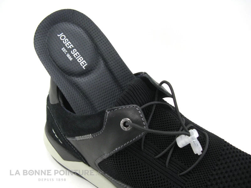 Facile à enfiler comme un chausson, la basket noire Josef Seibel Jeremiah se resserre avec le lacet auto-bloquant noir.