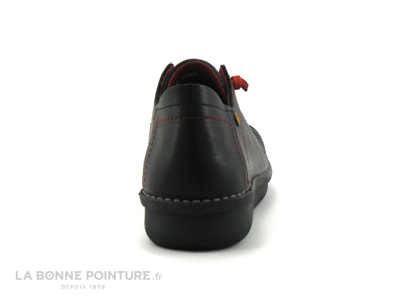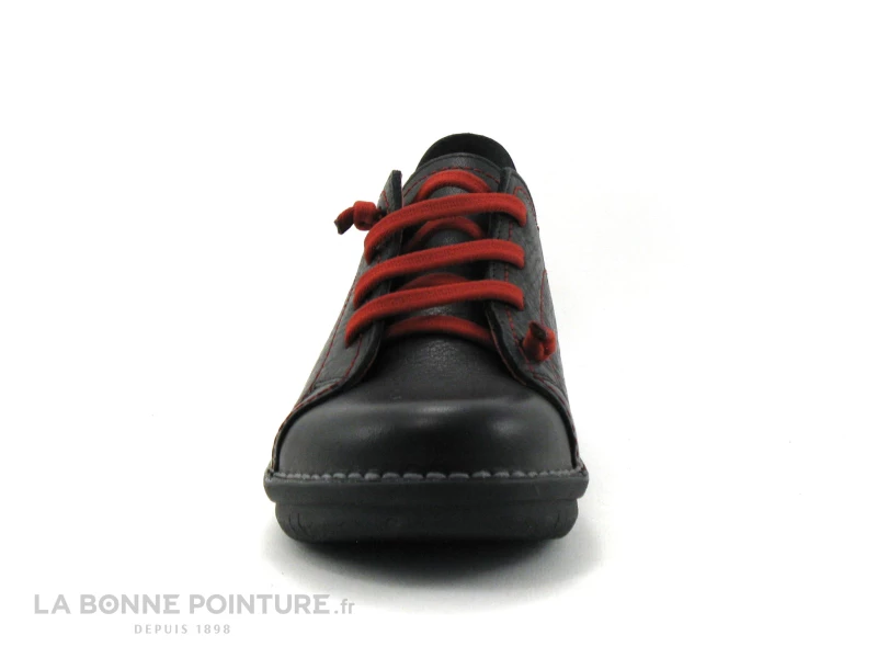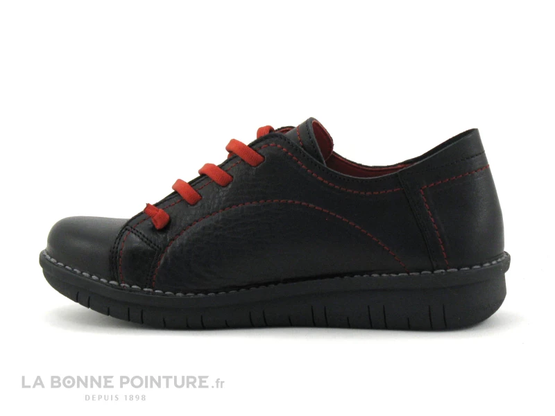 Cette chaussure Femme en cuir noir Jungla 7582 s’enfile en un clin d’oeil grâce au lacet Ă©lastique rouge : il se noue une fois pour toutes Ă la longueur dĂ©sirĂ©e, pratique au quotidien !