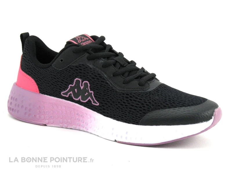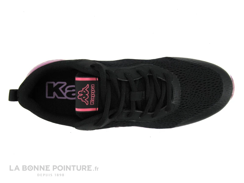 Cette chaussure de sport Kappa Berkat Femme est en textile maille très aéré et matières synthétiques résistantes noir et rose.