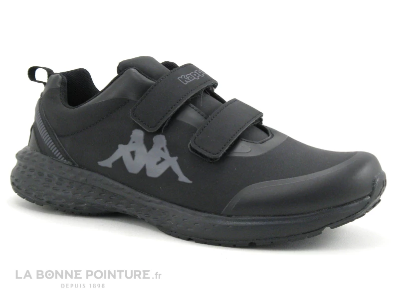 Ces sneakers Homme avec velcro Kappa sont noir mat, avec le logo Kappa en gris sur le côté.