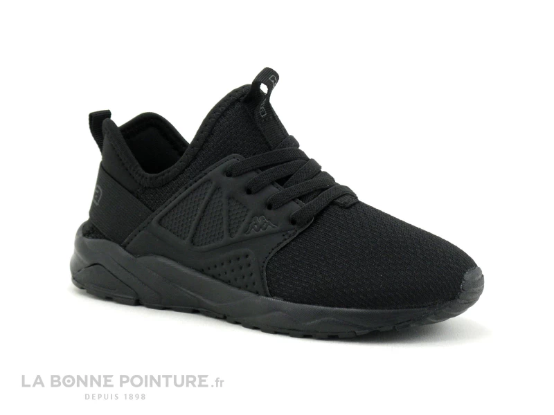 Cette chaussure enfant Kappa est en textile aéré noir et matières synthétiques résistantes.