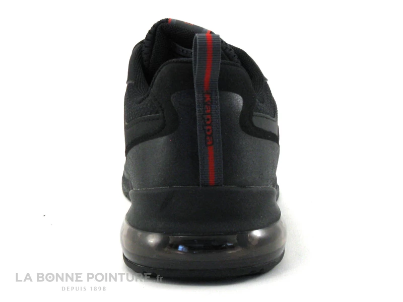 Une bride grise et rouge habille l’arrière des sneakers, et aide à enfiler la chaussure Kappa Homme.