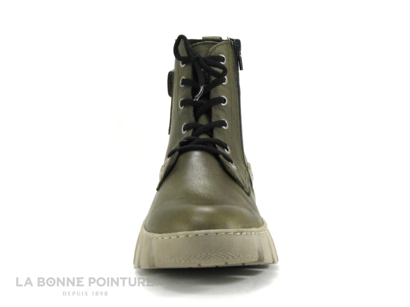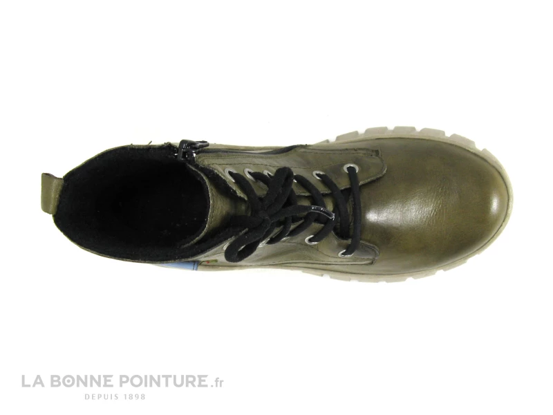 Fermeture rapide de la chaussure montante kaki Femme avec le zip sur l’intĂ©rieur.
