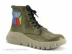 Avec leur petite pochette multicolore, leur cuir kaki et leur semelle plateforme, on craque pour ces boots Femme originales en cuir Karyoka Ian !