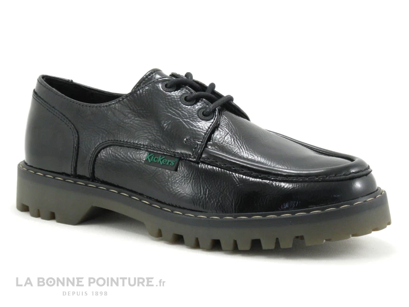 Les derbies noir verni Kickers Kick Decklow, des chaussures à lacet Femme mode et de grande qualité à s’offrir ou à se faire offrir !