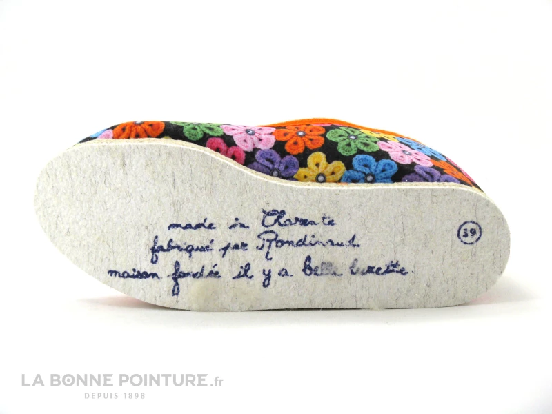 La semelle de marche de la pantoufle charentaise Lydie est en feutre, avec un revêtement anti-dérapant.