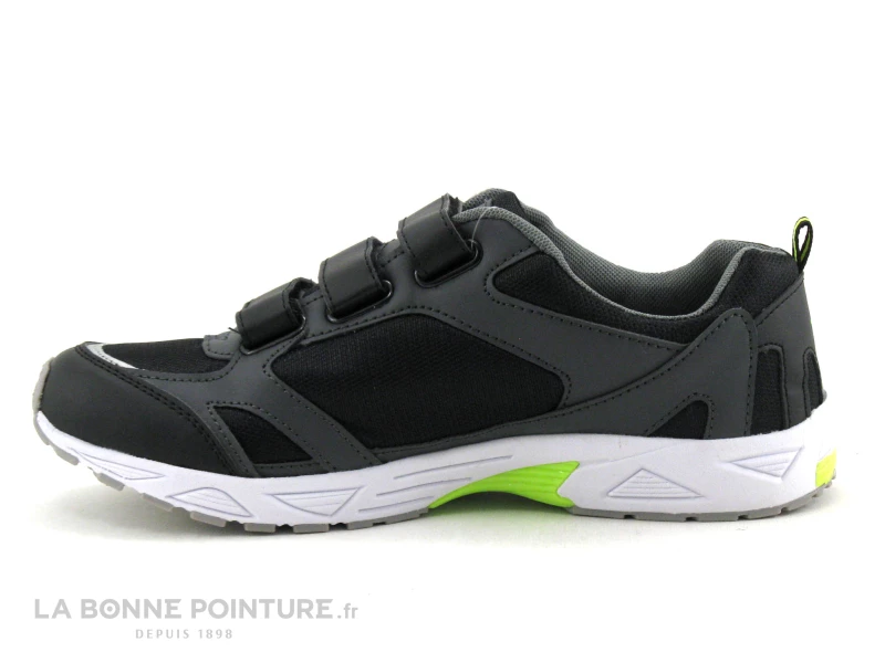 Cette basket basse Homme Lico 120073 Marvin associe textile et matières synthétriques noir et gris anthracite, avec une touche de vert lime.