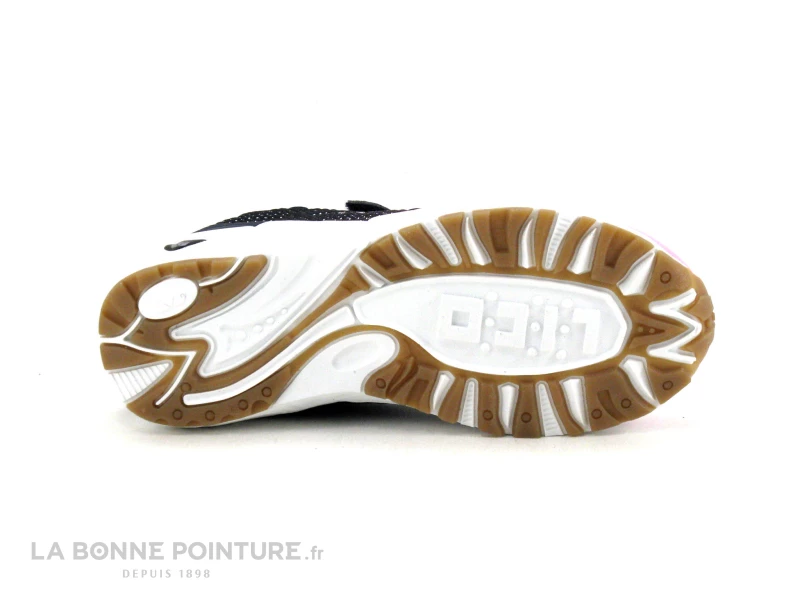 Cette chaussure de sport fille Lico est en textile et matières synthétiques résistantes bleu marine et rose.