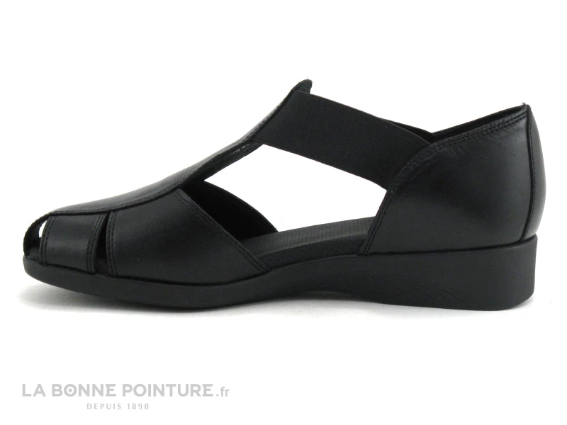 Cette sandale Femme à bout fermé est en cuir lisse noir, pour s’associer avec toutes vos tenues.