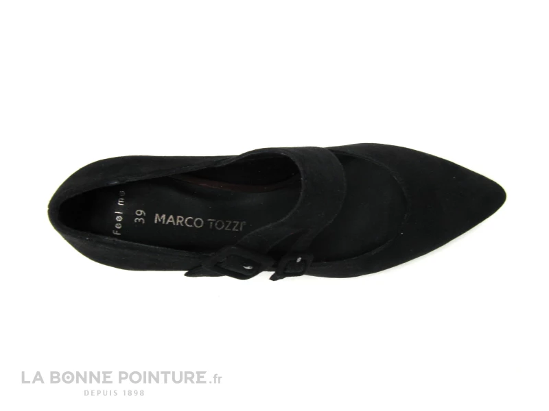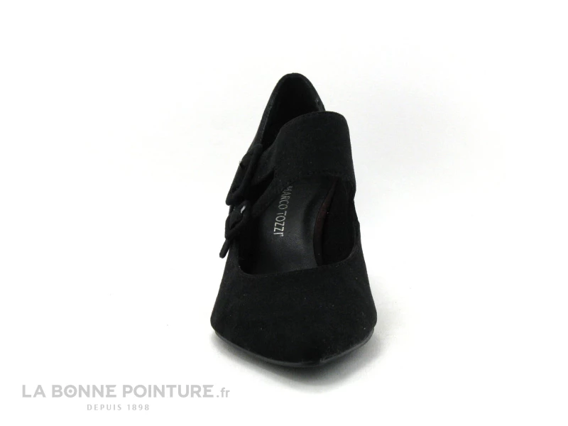 Le talon de l’escarpin noir Marco Tozzi 2-24415-35 se démarque avec sa forme incurvée, il est habillé de velours noir et mesure environ 6.5 cm de hauteur.