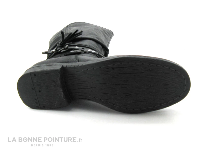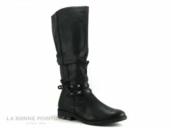 Cette botte Femme est noire avec un bel aspect veinĂ©, ainsi qu’une tige lĂ©gèrement froncĂ©e.