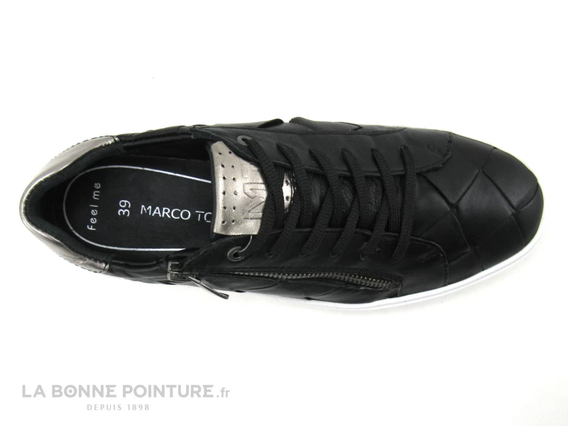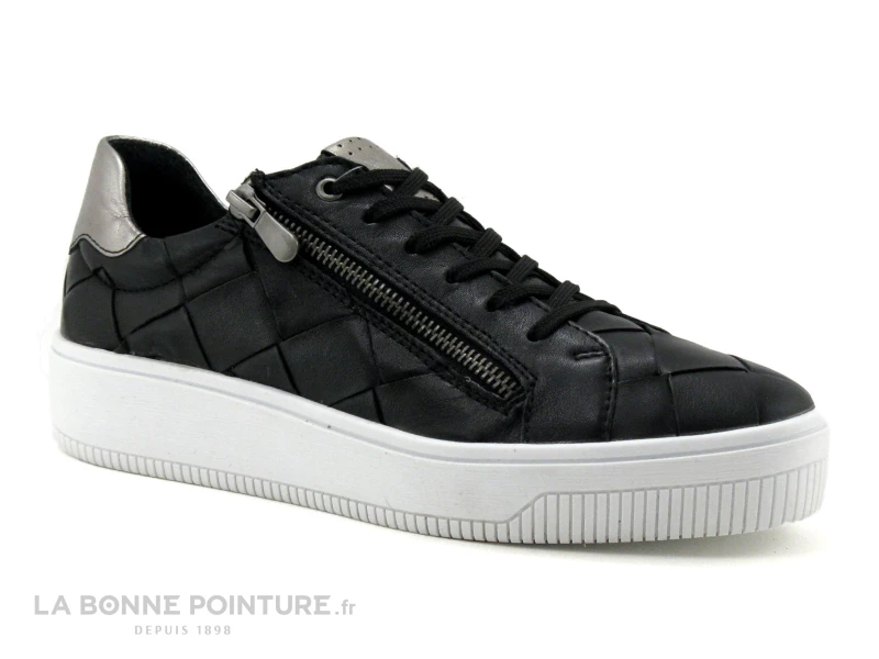 Vous fermerez facilement vos sneakers cuir noir Marco Tozzi 23737 avec la fermeture éclair latérale.