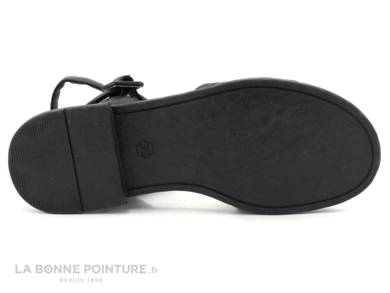 Ce nu-pieds mode Femme Marco Tozzi 28165 est en cuir lisse noir, composé de lanières doublées de cuir et légèrement matelassées.